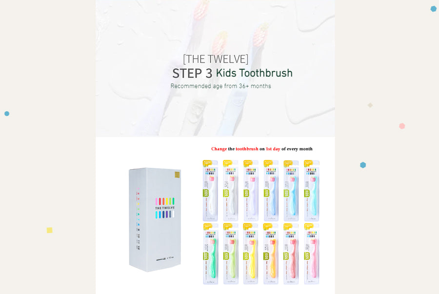 The Twelve Toothbrush is a fun and easy way to introduce brushing to your child. The main point of this toothbrush is to create a safe brushing time for the child. The Twelve Toothbrush that you can trust. Toothbrush head is made with non-toxic rubber to protect delicate gums and oral cavity. The toothbrush head size (12x22mm) is tailored to the childs oral cavity size. The soft 12mm bristles are best for brushing childs teeth above 36 months. You can now brush your childs teeth without hurting them. Thanks to The Twelve toothbrush. The toothbrush structure is made with baby safe and non-toxic polypropylene with a rubberized coating that is soft and safe for your child to use. The bristle that touches the gum is made from Korean BBC manufacturer. The bristle that touches the teeth is made from USA DuPont manufacturer. The 3 section bristle is a effective way to reduce gum abrasion and damage while maximizes brushing effect.